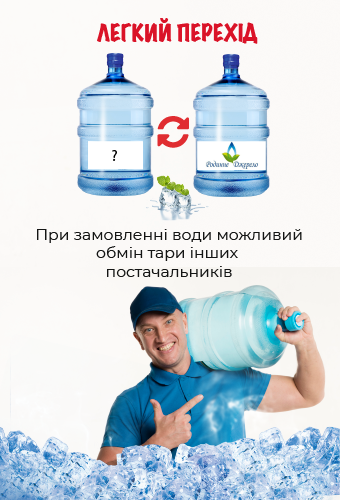 Безкоштовна доставка води діє по місту Київ при замовленні від двох бутлів. Окремо, при першій доставці, клієнт сплачує заставну вартість тари (кожен бутель - 200 грн).